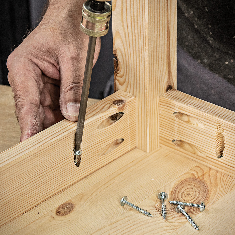 - Square drive self tapping screws for use with a No.2 square drive bit to resist slipping (cam out).